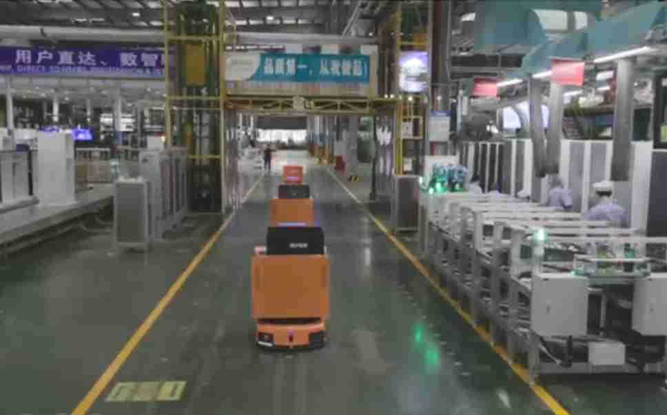 为车载冰箱物流配送打造的智能解决方案,,,包含产中物流通过潜伏举升AMR搬运至线边,,产后成品物流智能仓储,,,流程包含产中物流智能齐套入库,,,,线边安灯叫料AMR智能配送至线边,,成品入库、、、出库,,,通过无人堆高车机器人,,,智能仓储管理替代人工作业管理,,,实现更高存储、、、更高效率、、、、更具柔性化的解决方案。。。